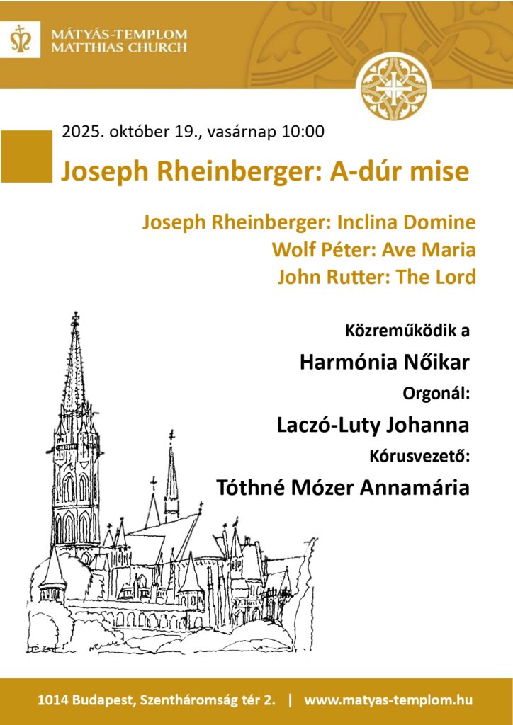A 2025. október 19. vasárnapi 10:00 órás szentmisén elhangzik: Josef Rheinberger: A-dúr mise