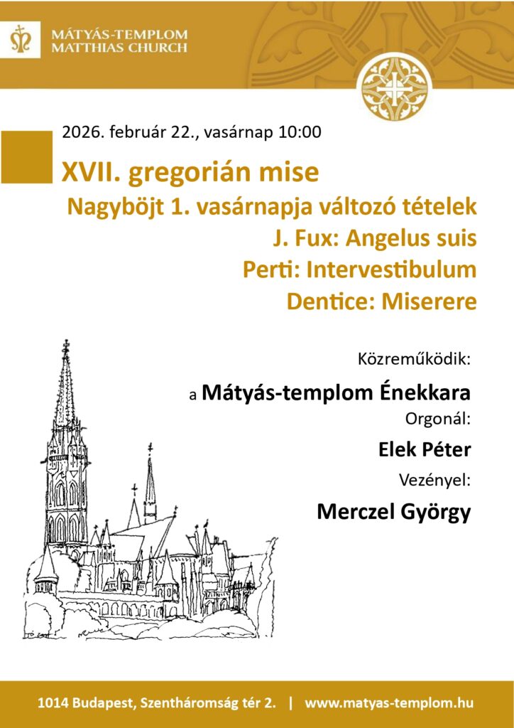 A 2026. február 22-én, Nagyböjt 1. vasárnapján a 10:00 órás szentmisén elhangzik: