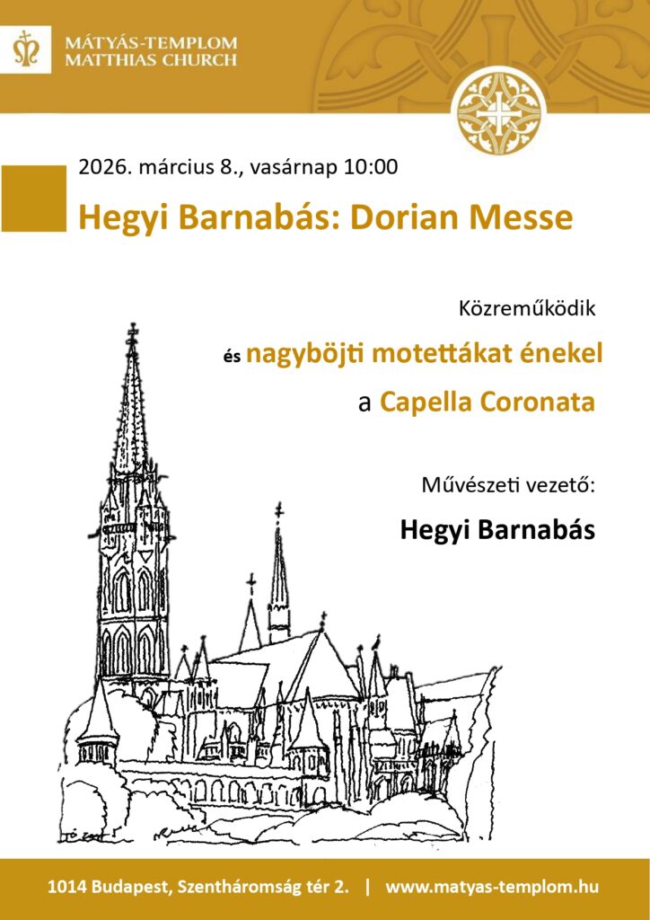 A 2026. március 8. vasárnapi 10:00 órás szentmisén elhangzik: Hegyi Barnabás: Dorian Messe